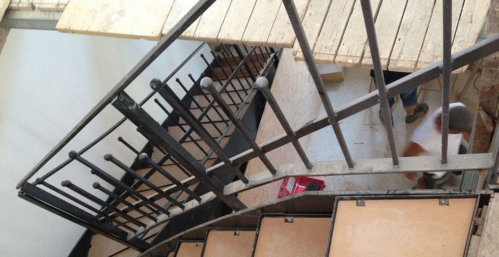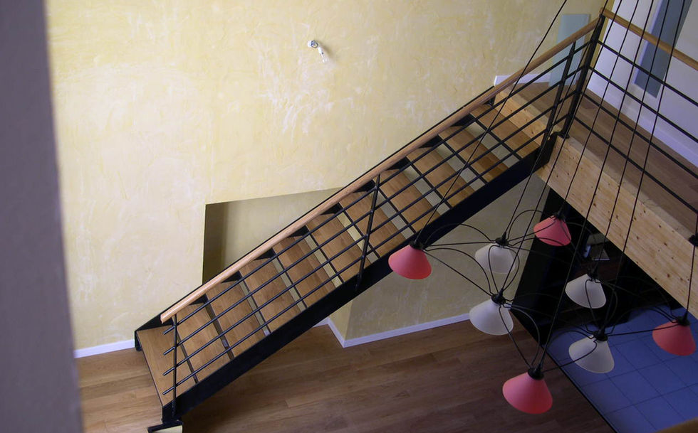 Réhabilitation complète d'une maison année 30, reprise des sols parquets et granito existants - Ouverture des murs porteurs pour la création d'une pièce de vie / cuisine en Openspace - Indexation des combles par plancher suspendu et création d'une ensemble passerelle & escalier en ferronnerie et marches béton.